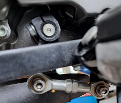 Das schwabbelige, originale Schaltgestänge musste 2 Gelenkköpfen (spielfrei) weichen. Das war ganz wenig Arbeit und hat zarte 7 Euro gekostet.