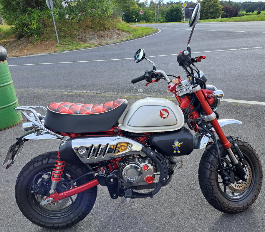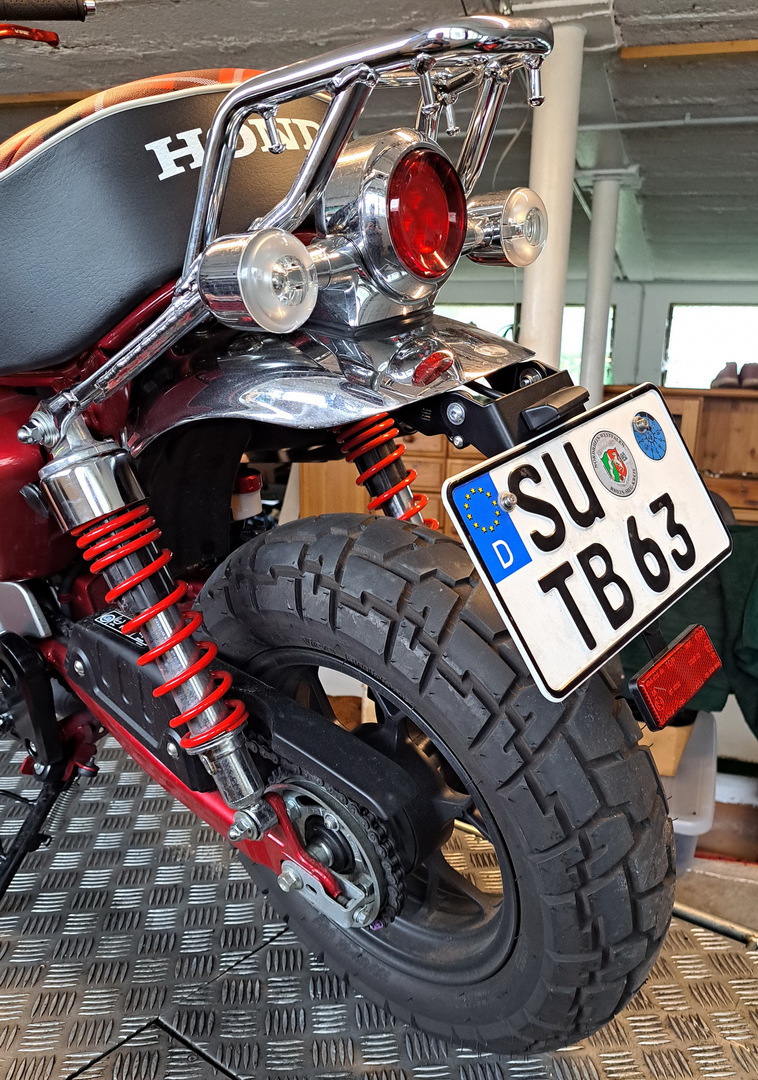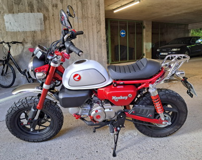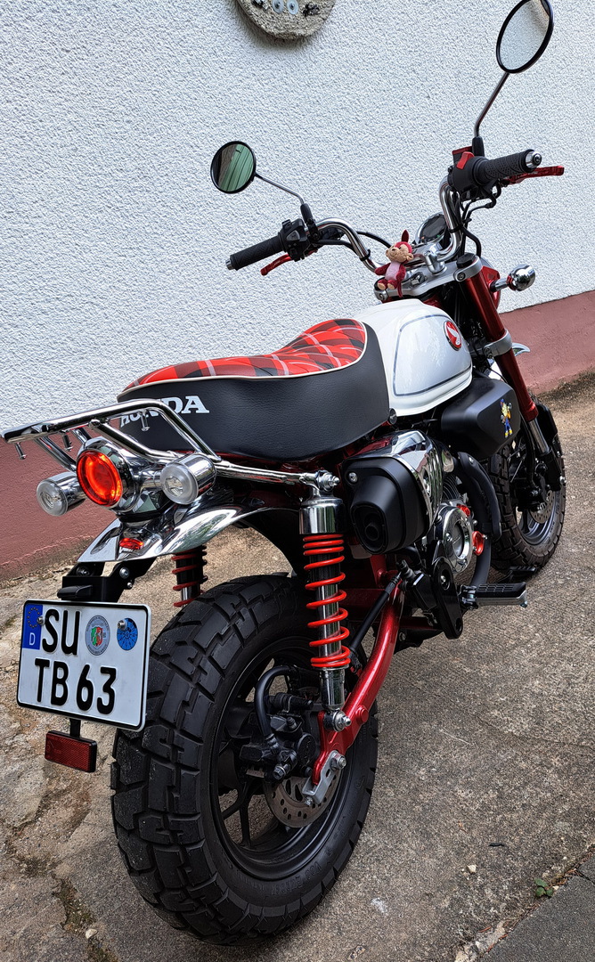 Also die Geschichte geht so. Vor drei Wochen hat mich die Fraktion der Polizei gelasert und ich habe richtig Federn gelassen. Knapp am Fahrverbot vorbei! Seitdem macht mir Mopedfahren nur noch halb so viel Spaß und ich muss höllisch aufpassen, dass ich nicht nochmal erwischt werde. Also ist Entschleunigung angesagt. Die Monkey wird mir dabei helfen. Mit der kann man eigentlich nur noch in der Fußgängerzone zu schnell sein. Und ganz nebenbei finde ich sie total toll!