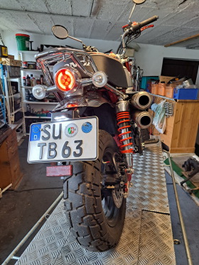 Man darf nur den Motor nicht starten! Unfahrbar im öffentlichen Straßenverkehr. Die Auspufföffnungen sind genau so böse wie sie aussehen.