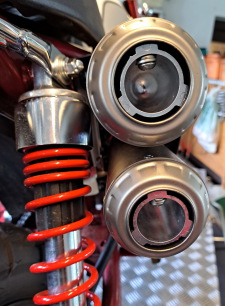 Nächster Überarbeitungsschritt war jetzt, weitere Taschen in die selbstgebauten DB-Killer einschlagen, zusätzlich je ein 7 mm Loch in die Alu-DB-Killer. Klang ist gut, Fahrversuch steht noch aus. So einfach ist das eben alles dann doch nicht!