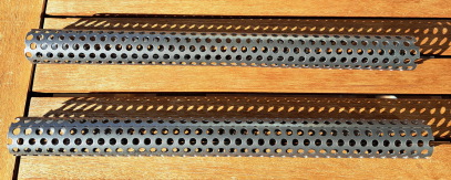 Im oberen Bereich des neuen DB-Killers, also dem Teil der vor der im Endtopf befindlichen Trennwand liegt, habe ich je 4 Löcher in 3 und 7 mm gebohrt. Die Abgase müssen ja irgendwie raus und seitlich am letzten DB-Killer vorbei!