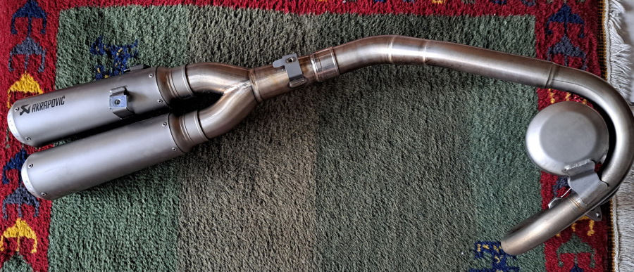 Jetzt fehlt nur noch eine vernünftige Auspuffanlage, das schien zunächst schwierig. Zwischenzeitlich konnte ich eine sehr gute, gebrauchte Akrapovic-Anlage erwerben.