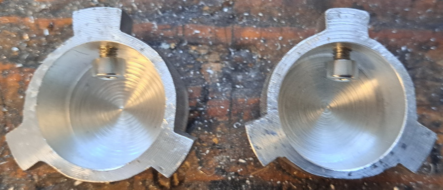Die vorhandenen Deckel hat mir dann ein anderer Freund kostenneutral noch mal überdreht, denn die erste Version unterlag einem Denkfehler von mir. Das waren einfach nur Stopfen und hätten wieder nicht den gewünschten Erfolg gebracht, sondern einfach nur den Auspuff verschlossen.