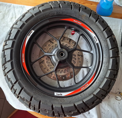 So jetzt noch ein bisschen optisches Tuning an den Rädern. Felgenrandaufkleber aus Australien!
