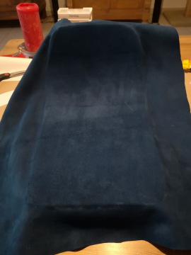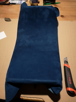 Weil ein schwarzes Sitzpolster nicht zur neuen Optik passen würde habe ich es kurzentschlossen mit dunkelblauem Ziegennappaveloursleder bezogen!