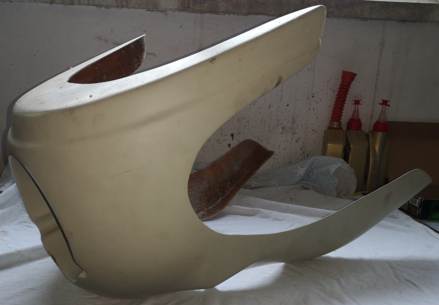 Die genaue Betrachtung der Halbschale hat mir einen ersten Eindruck der noch zu leistenden Arbeit gegeben. Es ist ein Rohling, und genau so ist die Oberfläche auch beschaffen. Da ist noch sehr viel Arbeit erforderlich, um sie in einen lackierfähigen Zustand zu versetzen. 2 Wochen bestimmt.