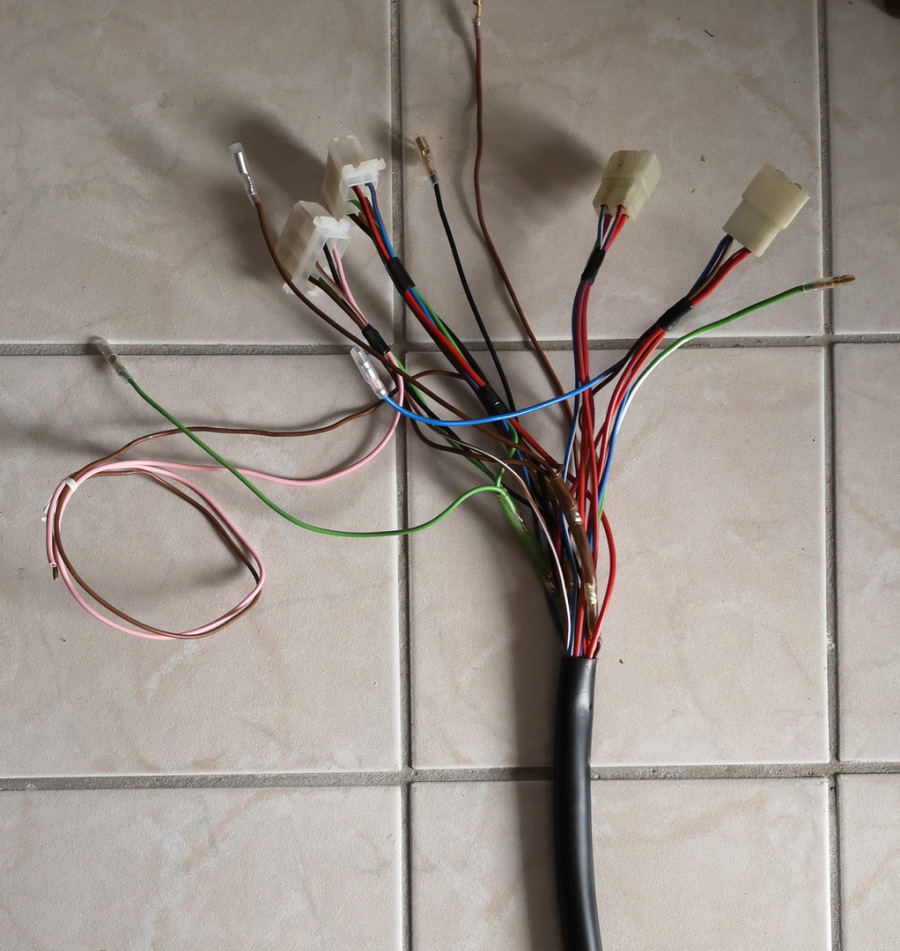 Da selbst bei flüchtiger Betrachtung schnell zu erkennen war, dass auch die Kfz-Elektrik nicht wirklich gut ist, habe ich mich entschlossen im Winter einen komplett neuen Kabelbaum anzufertigen. Als Vorlage (Schablone) dient mir ein alter, noch vorhandener XS 400-Kabelbaum. Den habe ich heute mal fixiert, die Isolierungen entfernt und die entsprechenden Kabel geordert!