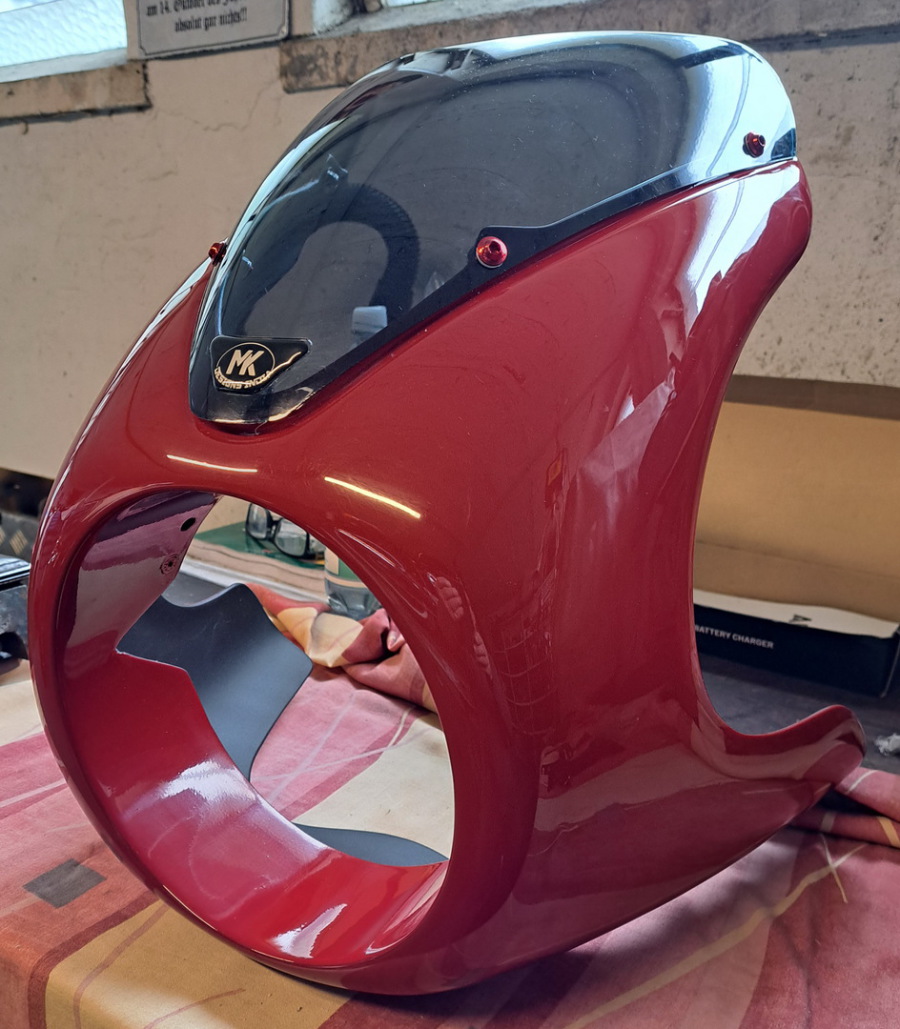 Jetzt aber habe ich ein Windschild bei MK DESIGN INDIEN gefunden, bei dem alle originalen Komponenten an ihren Plätzen bleiben und schick ist sie auch noch. Ist gestern gekommen!