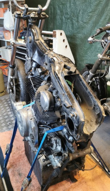Vom Rahmen habe ich zunächst alles entfernt, wie z.B. den Kabelbaum.